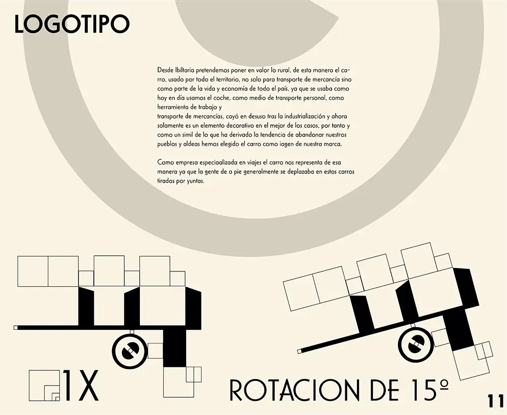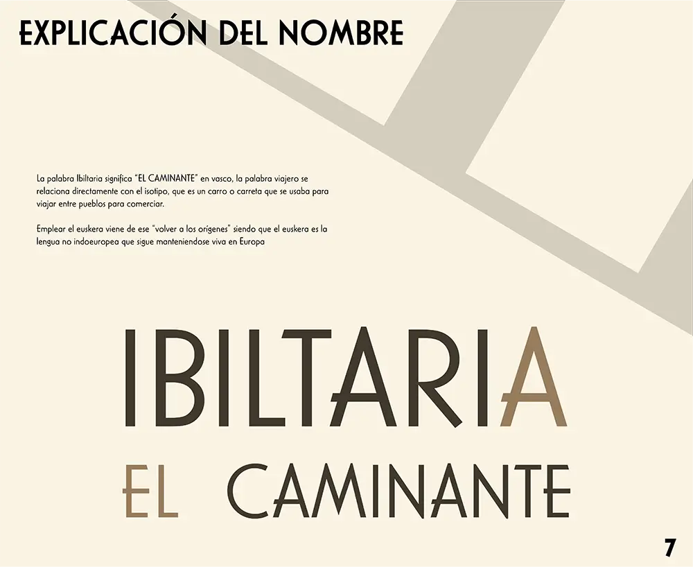 Lo primero en generar fue el logo y el nombre, el logo viene del carro o carreta que durante muchos años fue parte fundamental del mundo no solo rural sino de toda la sociedad española, mientras que el nombre viene del euskera, escogido por ser la última lengua no indo-europea que sigue viva en el mundo, siendo que ibiltaria significa en euskera el caminante.