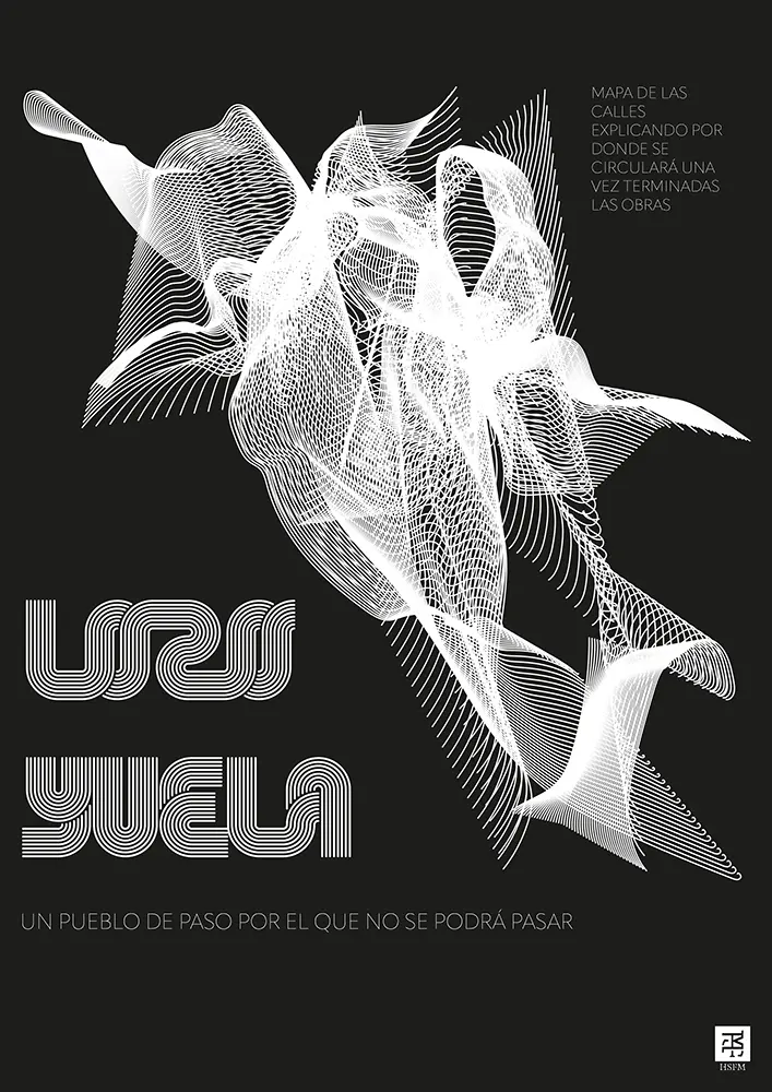 Desde HSFM nos posiconamos con los vecinos y queriendo hacer ver el caos que provocaría esta medida de peatonalizar se propuso un mapa de las calles del pueblo el cual modifiqué para descontextualizarlo para que no se entendiese mediante la distorsión y repeteición de líneas que represetaban las calles del pueblo, todo juntado a textos explicativos para darle contexto de lo que el mapa representa.