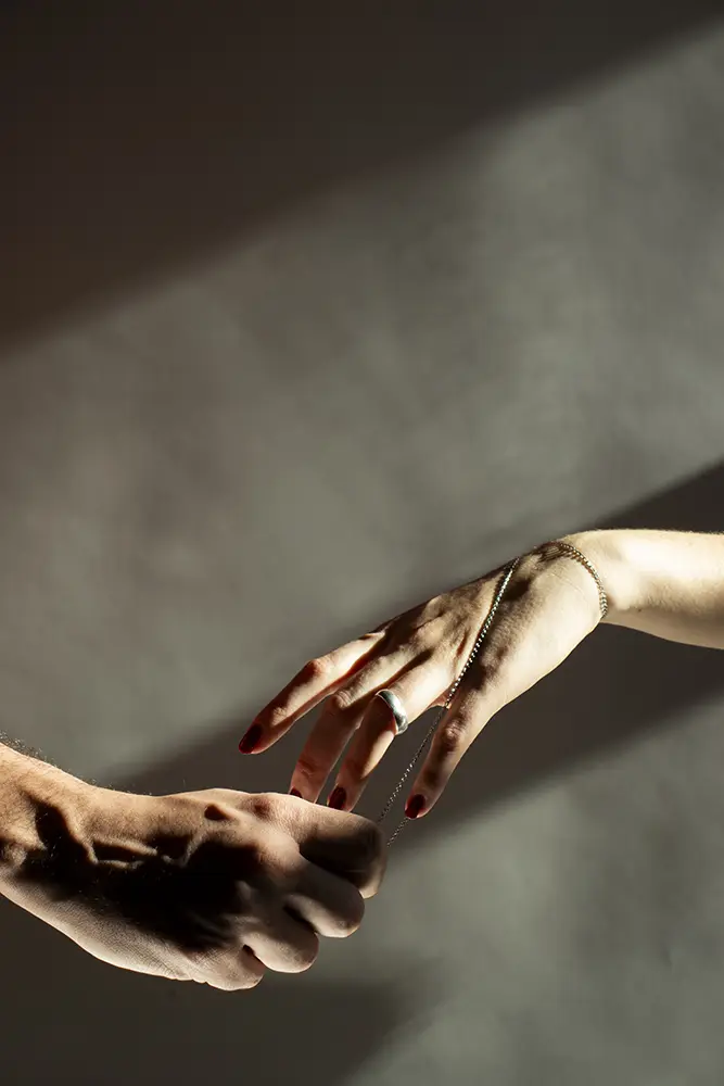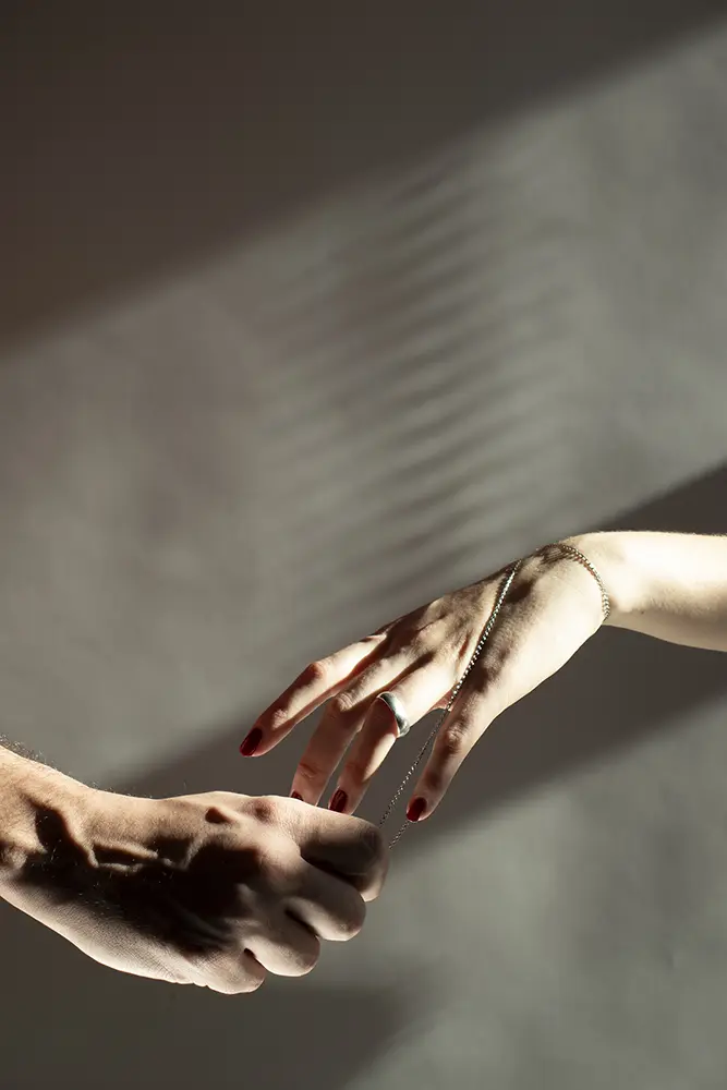 Mediante la composición con diagonales acompañadas con las sombras de las ventanas que dan la luz natural y el uso de joyería como el anillo de compromiso situado en el centro de la imagen y enfocado completamente quería llevar el punto de atención de arriba a abajo.